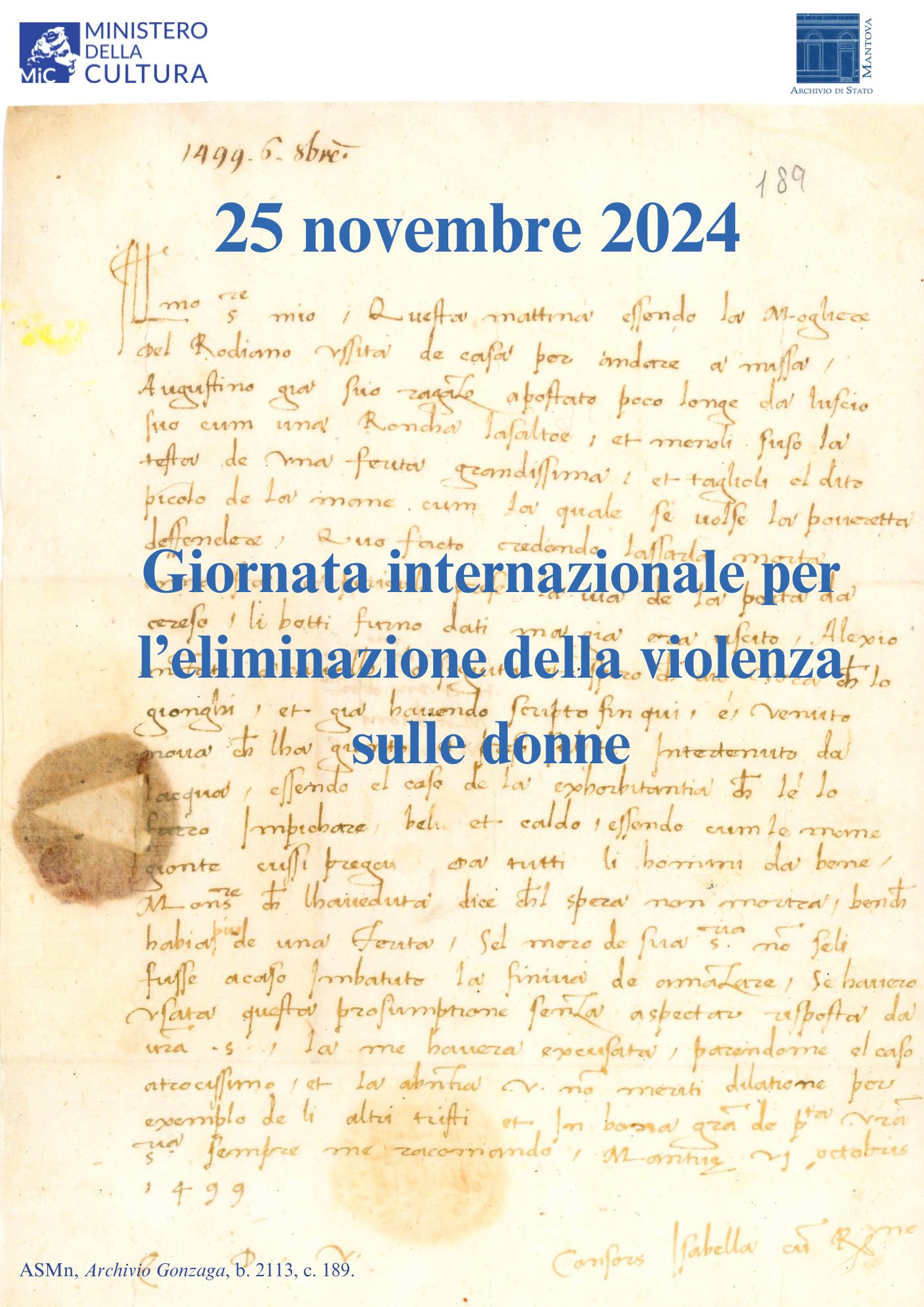 In occasione del 25 novembre l'Archivio di Stato pubblica una lettera di Isabella d'Este al marito Francesco Gonzaga per informarlo di un suo intervento contro la violenza alle donne.