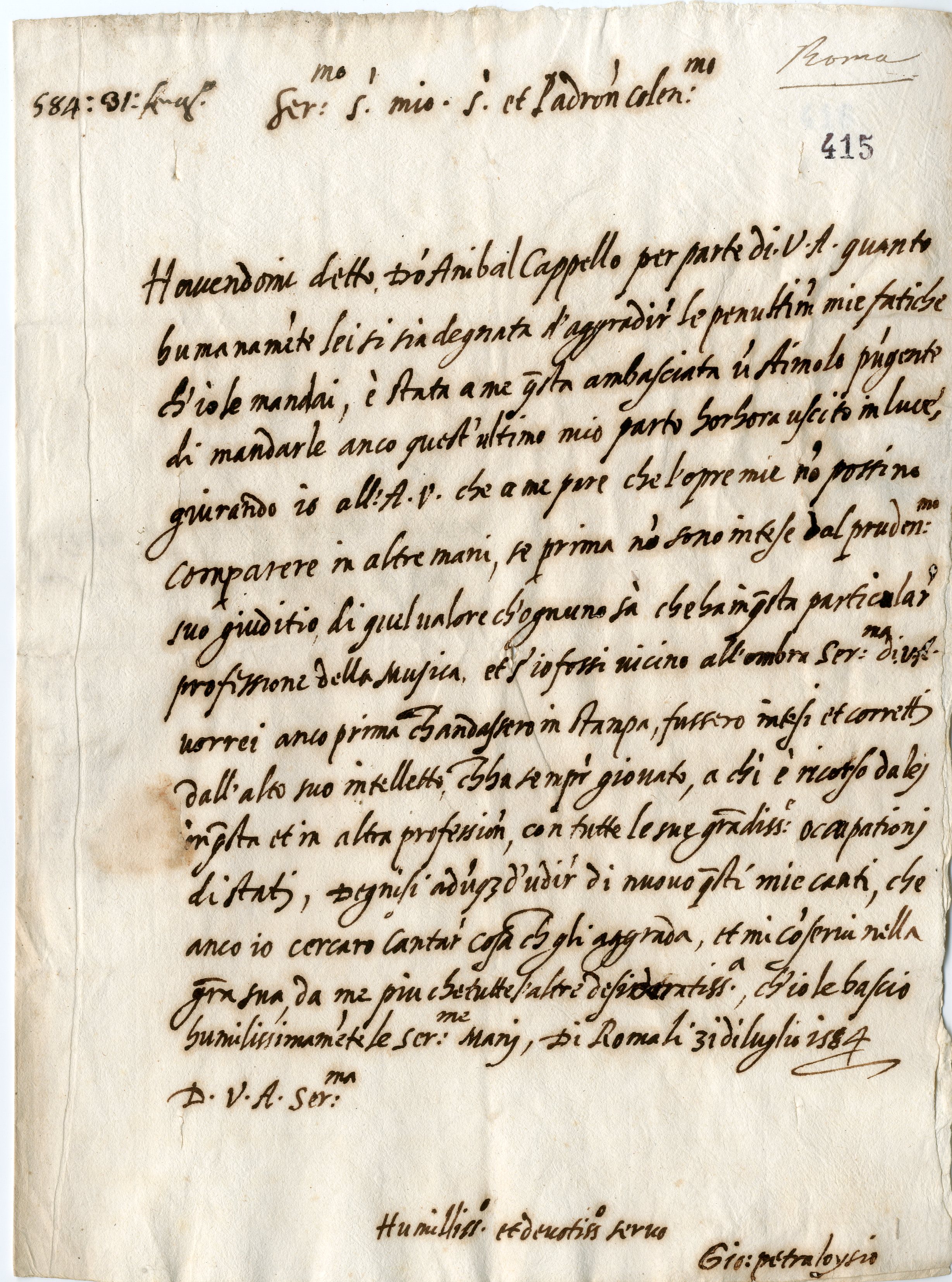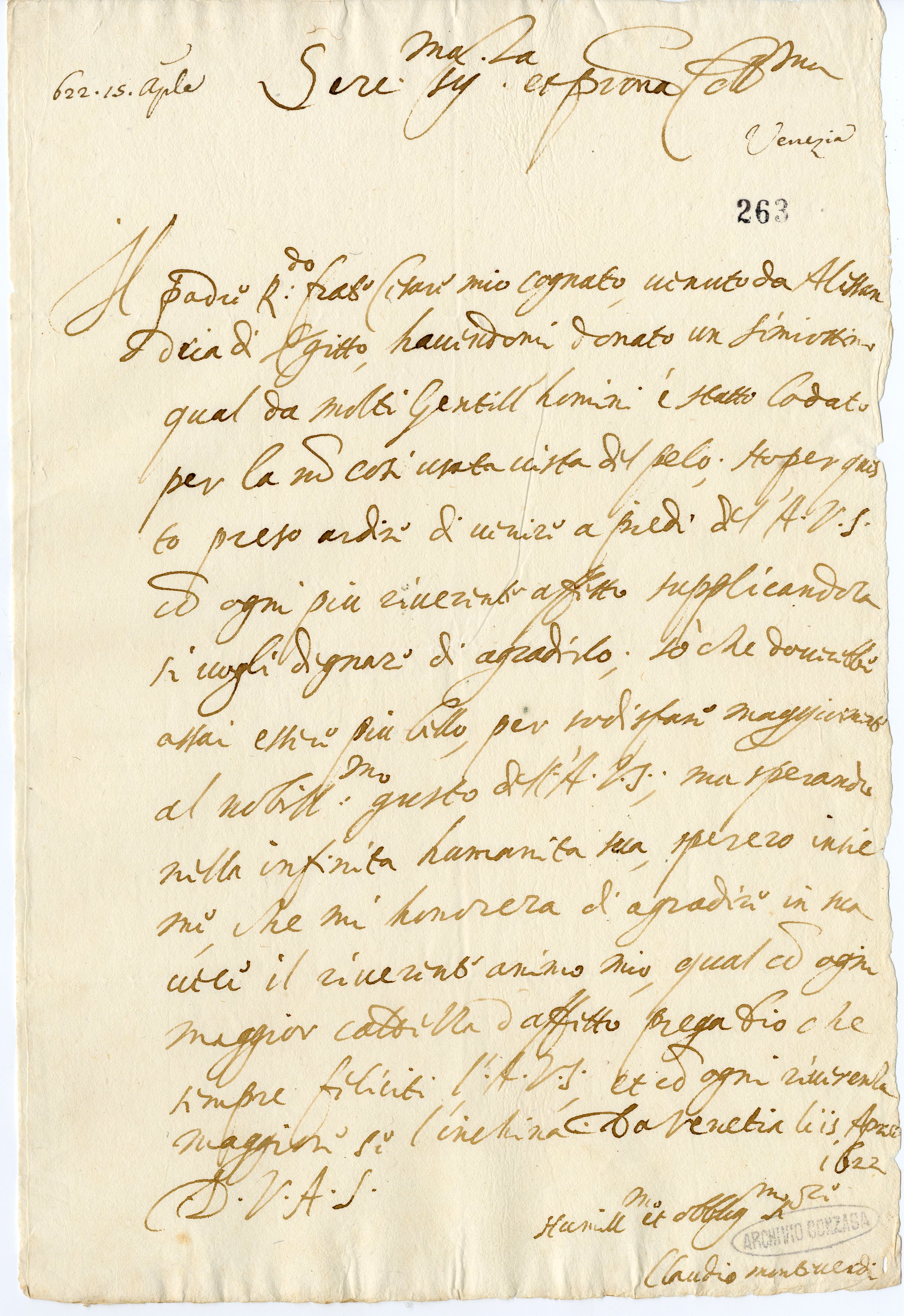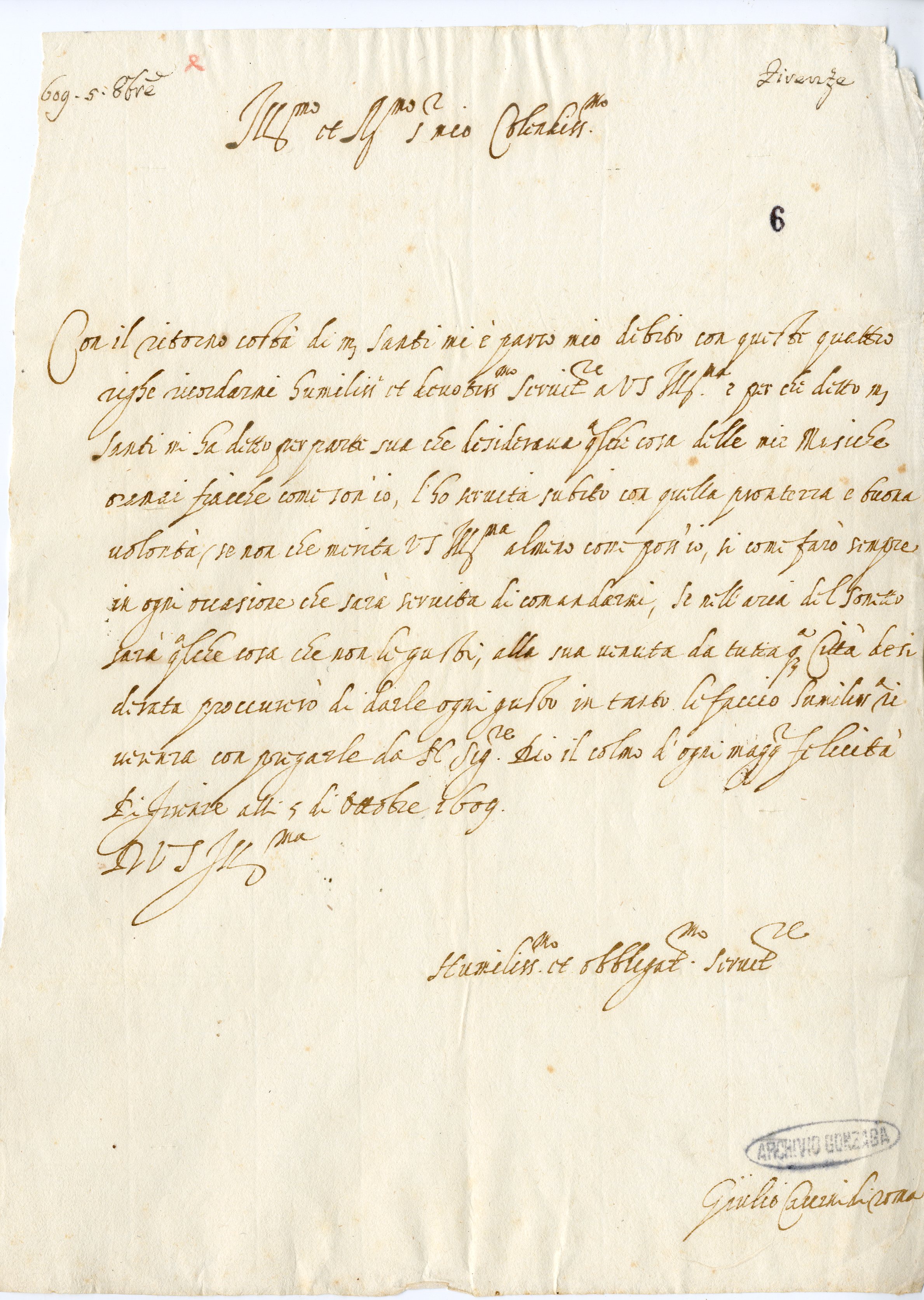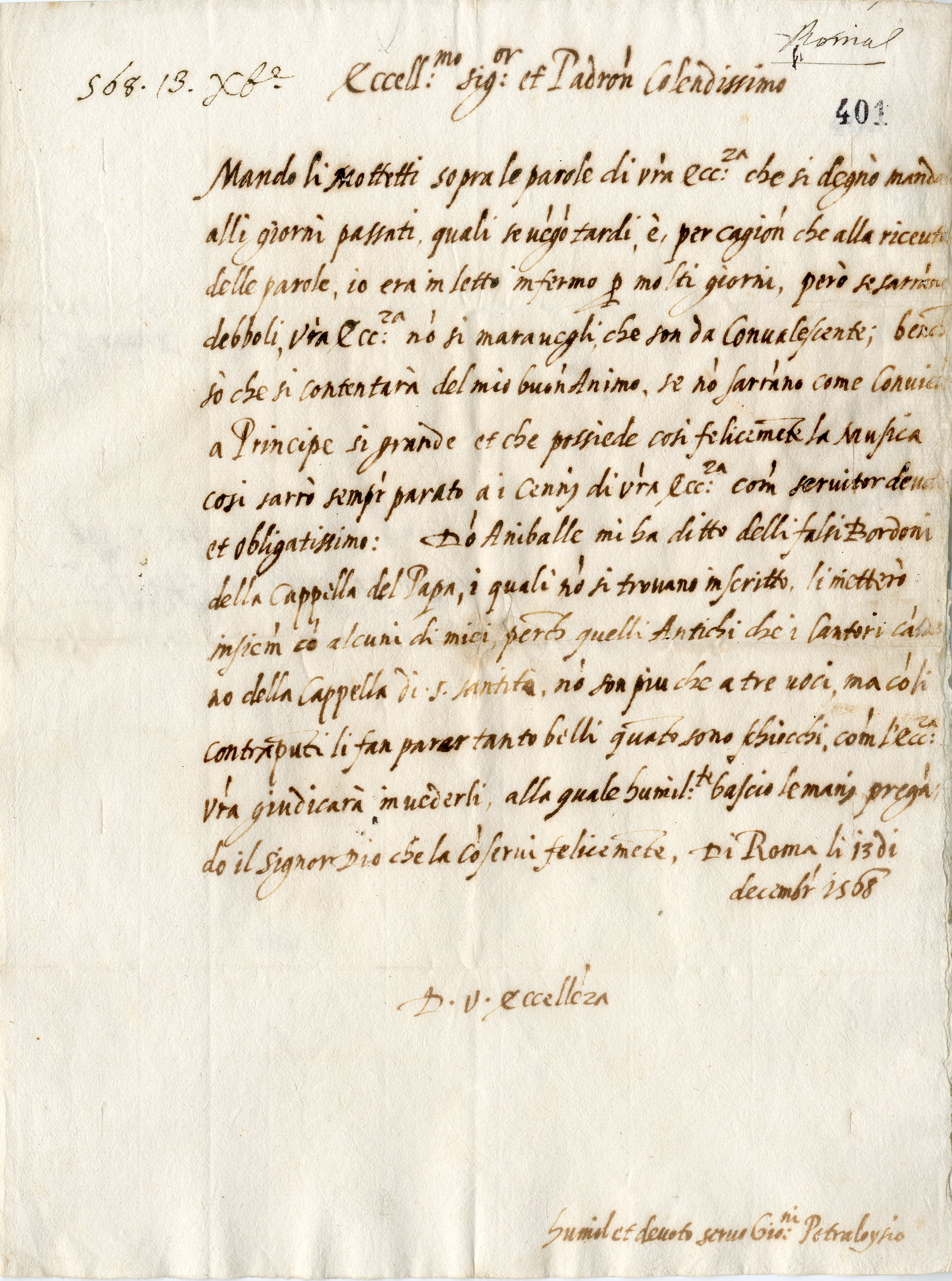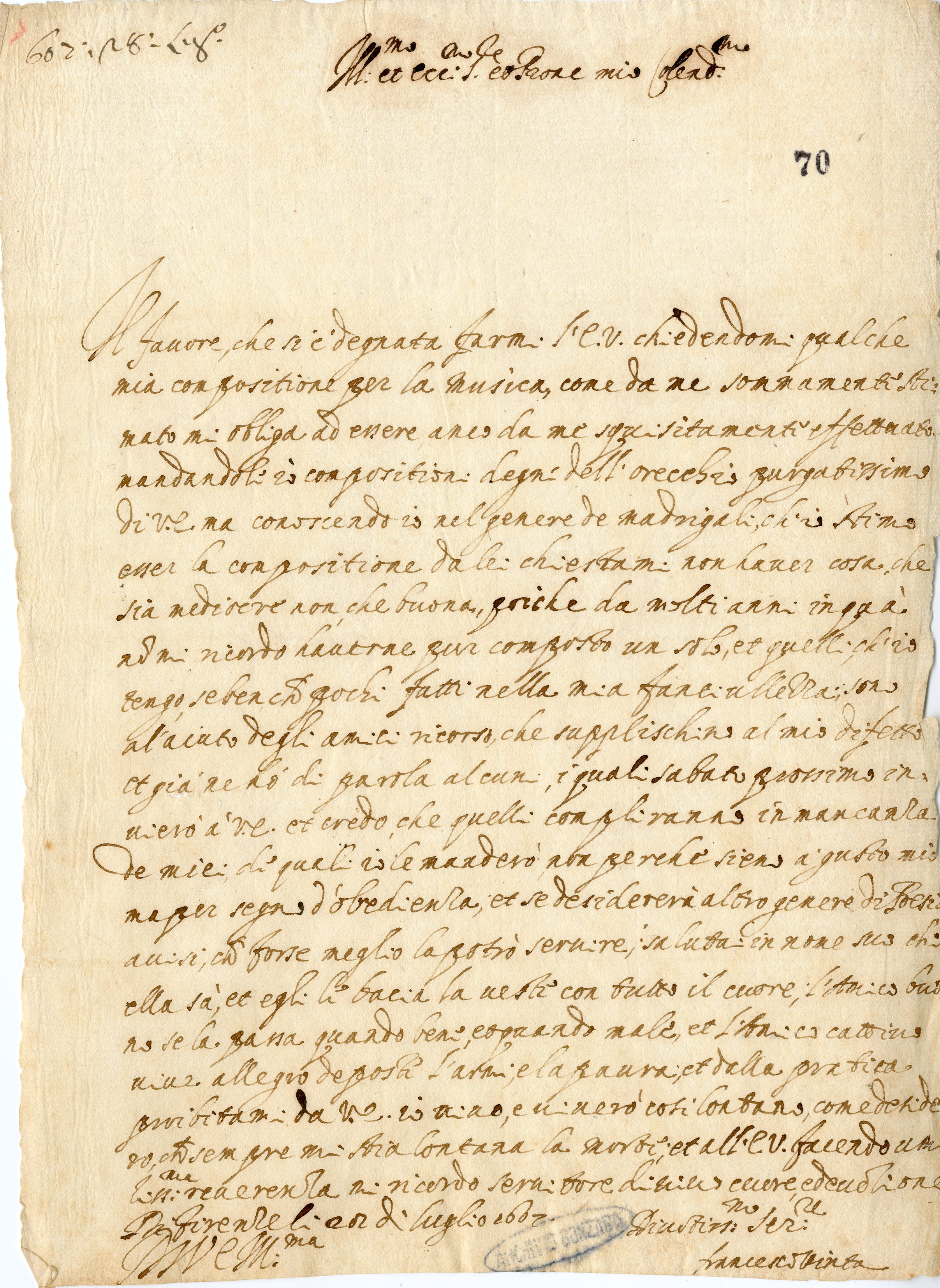 «Questa è la musica da me fatta»: con queste parole di Claudio Monteverdi nella lettera al consigliere del duca Vincenzo del 28 luglio 1607, l’Archivio di Stato di Mantova propone una selezione di 16 lettere, datate dal 1514 al 1622, testimonianza dell’interesse continuo della corte dei Gonzaga verso la musica. Si tratta di lettere in parte autografe, riunite nella raccolta Autografi (1439-1876, bb. 10) di questo Istituto.
